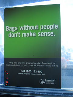 This is a sign to remind all residents and visitors that when one sees bags without people, one should report to the police in case that the bags are from the terrorists.