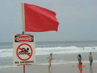 At the surfer's paradise of the Gold Coast in Australia, you can see such warning signs. You can also see helicopters petrolling along the coast. You feel safe in the rough surf.