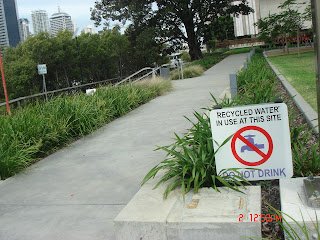 It is a delight to see, on the South Bank or QUT campus or anywhere in Australia, shining red pocianna or purple jacaranda in full bolossom. However, When you are thirsty, do not drink the recycled water for the trees and flowers. The Jacaranda (sp Jacaranda Mimosifolia), is of South American origin, principally Brazil. It grows well in sub-tropical regions and may attain a height of twenty metres. Jacaranda trees now have flowers in maroon and white as well as the popular blue-mauve. Life expectation may be up to 200 years if in private care and the timber is a creamy to rich yellow pinkish colour and may be used for ornamental woodwork.